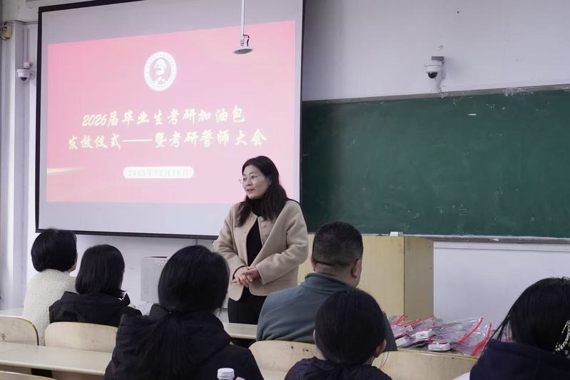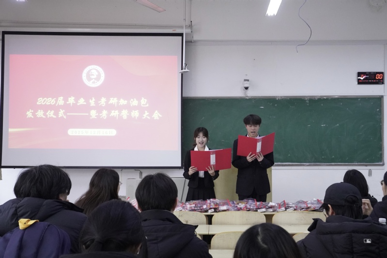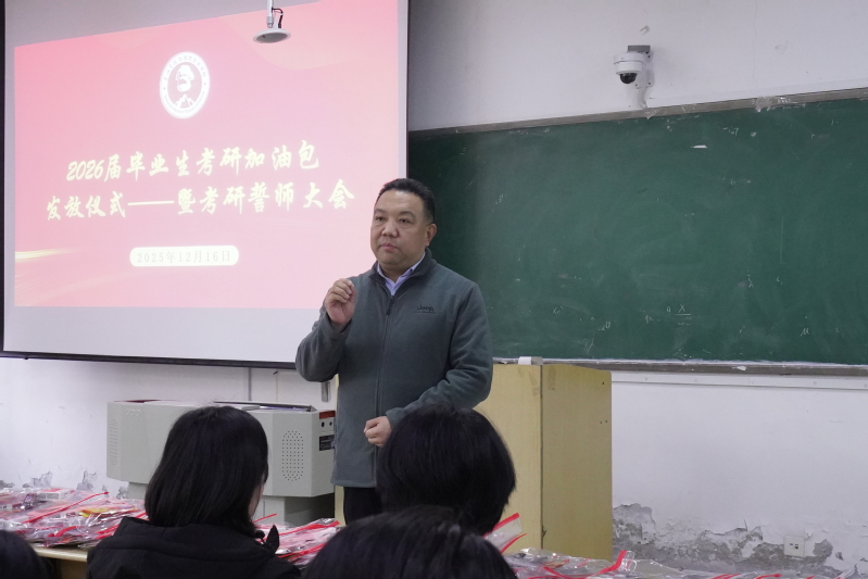 12月16日,马克思主义学院举行2026届毕业生考研加油包发放仪式暨考研誓师大会。学院班子成员、考研指导教师、班主任与全体备考学子齐聚,共赴暖心助考之约。