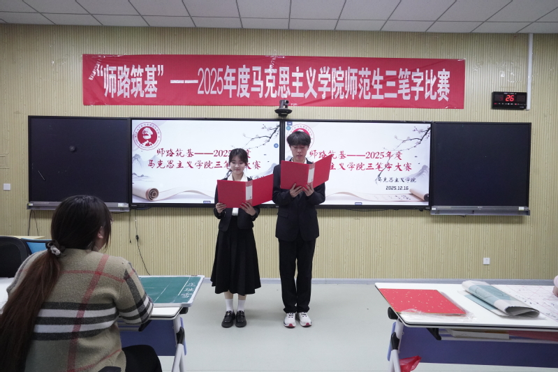 12月16日,马克思主义学院“师路筑基”师范生三笔字比赛在二号综合楼A1011举办。比赛旨在引导师范生明确“三笔字”既是教学核心技能,更是传递知识、塑造灵魂、助力学生“扣好人生第一粒扣子”的重要载体。