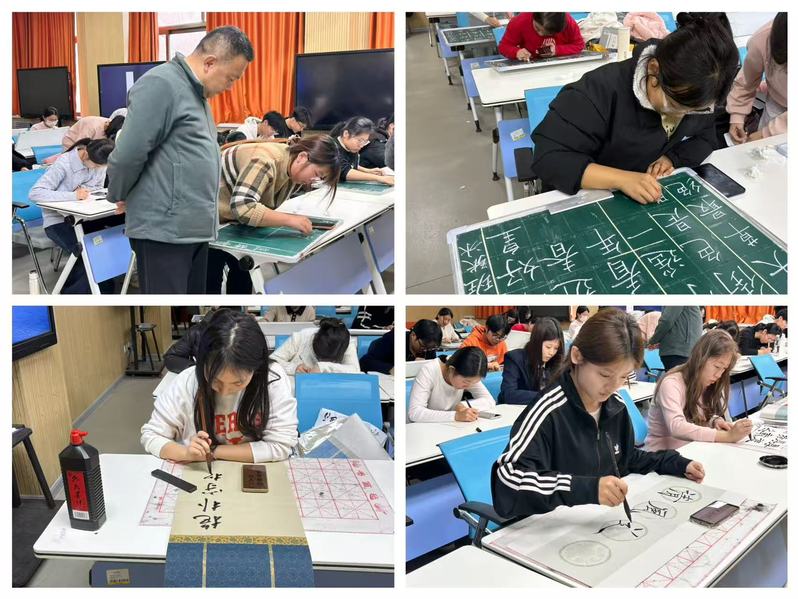比赛设置硬笔、毛笔、粉笔三个组别,覆盖学院全体师范专业学生。赛场中,选手们专注凝神、运笔稳健,作品或工整清秀、或遒劲有力,于笔墨间尽显扎实书写功底、严谨治学态度与昂扬精神风貌。评委组从字形结构、笔法规范、版面布局及教学实用性等维度进行综合评审。