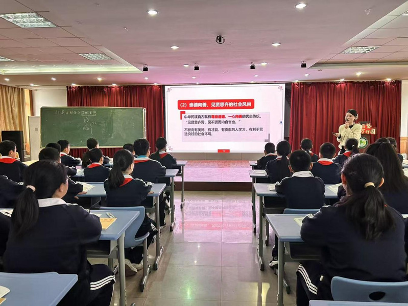 见习活动以观课与说课相结合的形式展开,旨在引导学生学习课堂教学设计与思政育人的实践路径。课堂观摩环节,望岳中学教师王立峰带来了一堂道德与法治示范课《薪火相传的传统美德》。王老师以生活情境导入课堂,结合“闻鸡起舞”“程门立雪”“孔融让梨”等经典故事,融入新时代好少年捐资助人的鲜活案例,引导学生感悟孝悌忠信、礼义廉耻、爱国奉献、担当自强等传统美德的深刻内涵。课堂互动充分且高效,内容贴近学生实际,注重以情感人,充分展现了思政课铸魂育人的独特魅力,让在场师生深刻体会到中华优秀传统文化与思政课堂的深度融合。随后,王老师围绕教学思路、课堂设计、育人目标等方面进行说课展示,帮助观摩学生清晰梳理课堂各环节的内在逻辑,详细阐述思政育人融入课堂的方式方法,完整呈现了备课思考、教学设计初衷与课堂把控思路。