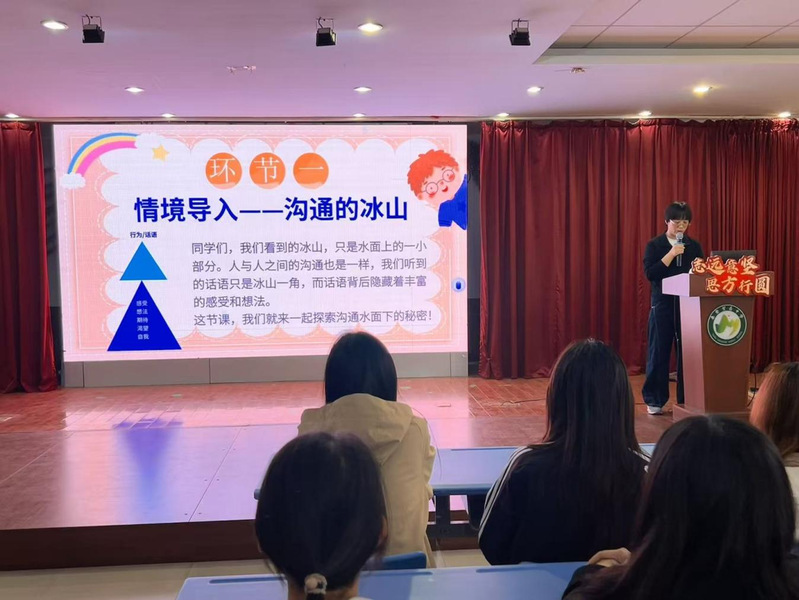 班级管理与班会设计交流中,望岳中学教师钱芳芳以《好好说话,暖心交流》为主题,围绕教材分析、教学目标、教法学法、学情分析、教学重难点、教学过程六大模块,向观摩学生分享主题班会设计经验。她立足中学生身心发展特点,聚焦沟通艺术与班级育人,内容务实、方法具体,为师范生今后开展班主任工作、设计并上好主题班会提供了清晰指引与实用范本。