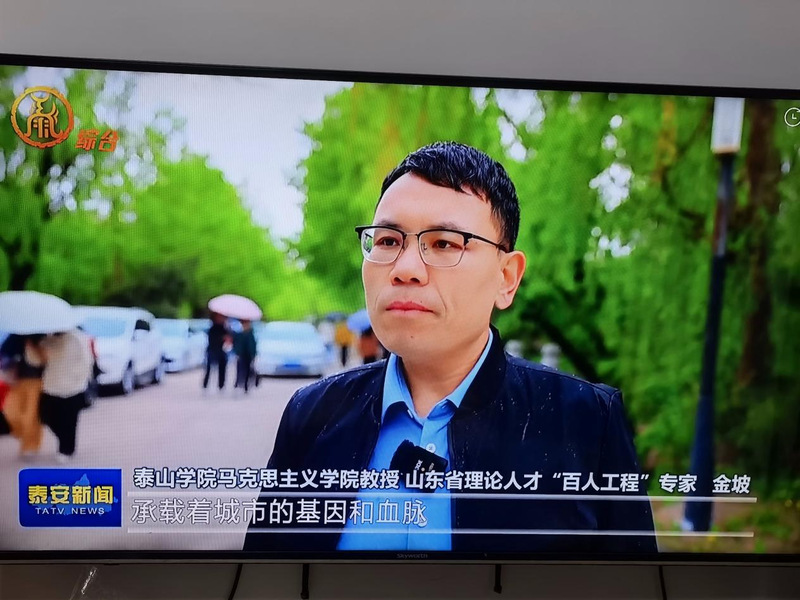 4月17日晚七点三十五,泰安一套(综合频道)《泰安新闻》播出金坡博士专访“泰安:为文物让路 护城市根脉”。此次专访中,金坡博士结合泰安近年来文物保护与城市更新协同推进的实践,从城市文化传承的专业视角,解读了“为文物让路”发展理念背后的文化价值与现实意义,分析了文物活化利用对延续城市历史脉络、塑造城市独特文化标识的重要作用,分享了对于平衡城市建设与文化保护关系的相关思考。